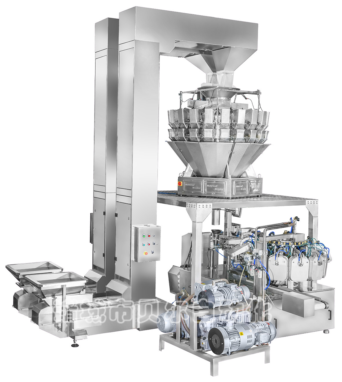 我廠是專業(yè)的給袋式全自動真空包裝機(jī)廠家,給袋式真空包裝機(jī)是我廠自主研發(fā)的新產(chǎn)品,中國第一臺給袋式全自動真空包裝機(jī)于2007年9月誕生于我廠,現(xiàn)在已經(jīng)申請國家專利,該機(jī)能夠使用機(jī)械手將真空包裝袋自動取袋,自動撐開,自動打印生產(chǎn)日期及批號,自動上料,自動真空包裝,完全實現(xiàn)無人操作,真正實現(xiàn)自動化包裝。包裝袋范圍長100-260mm,寬60-200mm,包裝效率每小時2000-2600袋。設(shè)備通過更換不同的上料系統(tǒng),可以對液體,膏體,粉末,塊狀等不同的物料進(jìn)行自動定量真空包裝,配備自動上料機(jī)后可以對塊狀物料邊稱量邊真空包裝,該包裝機(jī)由日本三菱PLC控制,人機(jī)界面使用日本三菱產(chǎn)品,可以對整機(jī)進(jìn)行監(jiān)控,如果出現(xiàn)空袋及未上袋等異常情況,PLC均能對異常情況進(jìn)行判斷,然后輸出異常信號,控制包裝機(jī)采取相應(yīng)措施,避免浪費物料及包裝袋。